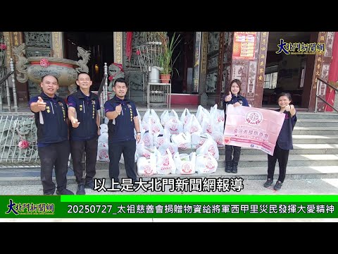 丹娜絲颱風給臺南造成相當嚴重災害損失,尤其七股、將軍、北門至今已過半個月之久尚未完全恢復,許多災民急需物資和財務支持。今天(27)日太祖慈善會,發揮人飢己飢、人溺己溺之精神,帶著滿載物資來到西甲里清湄宮廟前發放物資,給西甲里受災民眾領取,帶給災民滿懷溫馨及喜悅。